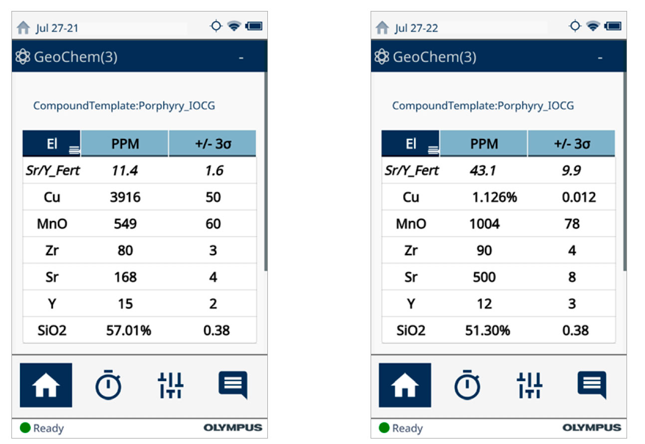 在實驗室中測量的鍶(Sr)、釔(Y)、氧化錳(MnO)、二氧化硅(SiO2)和鋯(Zr)的不同比例組合可用于有效區(qū)分斑巖銅環(huán)境中的成礦特性和妨礙成礦的侵入體。最近,澳大利亞塔斯馬尼亞大學(xué)礦床和地球科學(xué)中心(CODES)和英國萊斯特大學(xué)地理、地質(zhì)和環(huán)境學(xué)院都對手持式分析儀在現(xiàn)場檢測制備好和未制備樣品以幫助勘探人員評估斑巖可開采性的能力進行了研究。