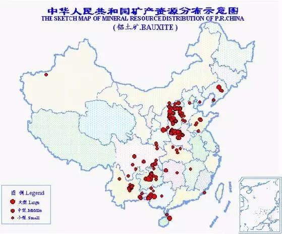 中國(guó)鋁土礦資源豐度屬中等水平,產(chǎn)地310處,分布于19個(gè)省(區(qū))??偙S袃?chǔ)量礦石22.7億噸,居世界第7位。