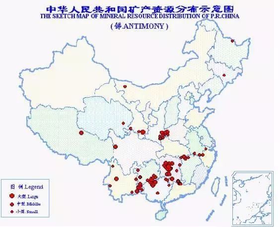 中國(guó)是世界上銻礦資源最為豐富的國(guó)家??偙S袃?chǔ)量銻278萬噸,居世界第1位。已探明儲(chǔ)量的礦區(qū)有111處,分布于全國(guó)18個(gè)省(區(qū)),以廣西銻儲(chǔ)量為最多,約占全國(guó)的41.3%;其次為湖南、云南、貴州、甘肅、廣東等省。