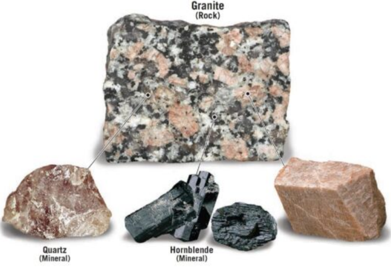 巖石的構(gòu)成:如前所述,巖石由礦物或礦物質(zhì)組成。巖石的組成取決于其中存在的礦物。有些巖石可能由單一礦物組成,而其他巖石可能含有多種礦物。例如,花崗巖主要由石英、長石和云母組成,而玄武巖主要由斜長石和輝石組成。礦物的構(gòu)成:礦物是具有特定化學(xué)配方的元素化合物。它們是巖石的基本組成部分,并且可以根據(jù)它們獨(dú)特的物理和化學(xué)特性來識別。一些常見的礦物包括石英、長石、云母、方解石和赤鐵礦,每種都有其獨(dú)特的特征。