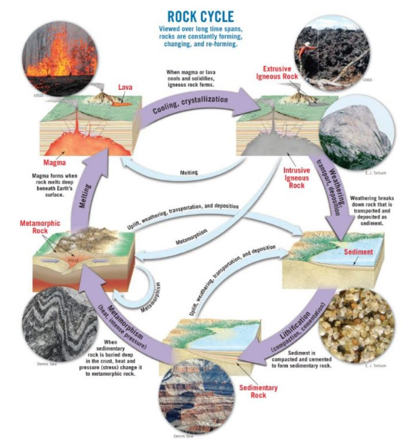 巖石的誕生:巖石是由礦物或礦物質(zhì)的天然聚合物組成。它們通過一系列地質(zhì)過程形成,始于巖石循環(huán)。這個(gè)循環(huán)包括三種主要類型的巖石:火成巖、沉積巖和變質(zhì)巖。火成巖源自于熔融巖漿,可以是在地表以下冷卻而成的(侵入巖)或在地表上凝固而成的(噴發(fā)巖)。沉積巖是由沉積物積累和壓實(shí)而形成的。而變質(zhì)巖是指之前存在的巖石經(jīng)歷了高溫高壓作用,發(fā)生了變質(zhì)。