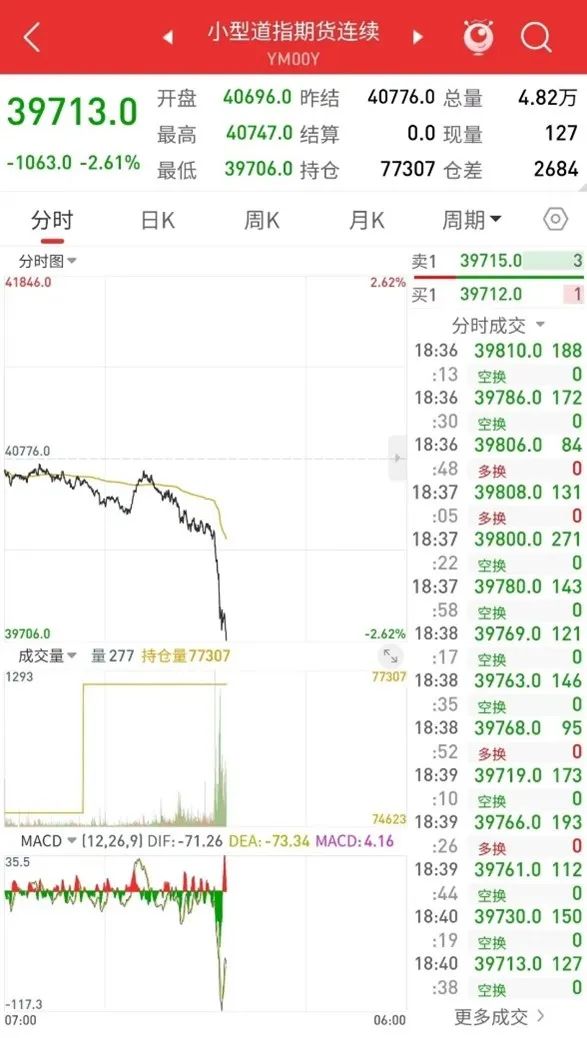 在中方連環(huán)反制之下,美指期貨應聲下跌超千點。