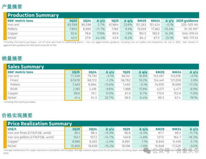 當(dāng)?shù)貢r(shí)間22日,總部位于巴西里約熱內(nèi)盧的礦業(yè)巨頭淡水河谷發(fā)布2025年第二季度產(chǎn)銷量報(bào)告稱,報(bào)告指出,鐵礦石業(yè)務(wù)方面,新資產(chǎn)逐步增產(chǎn),運(yùn)營(yíng)可靠性不斷提升,這些將支持公司更順利地完成2025年生產(chǎn)計(jì)劃。