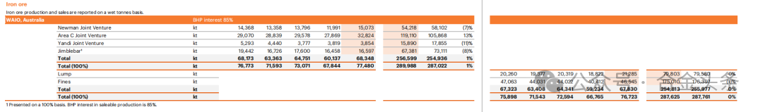 必和必拓2026財(cái)年(2025.07-2026.06)鐵礦石目標(biāo)指導(dǎo)量2.84-2.96億噸(100%基準(zhǔn))。